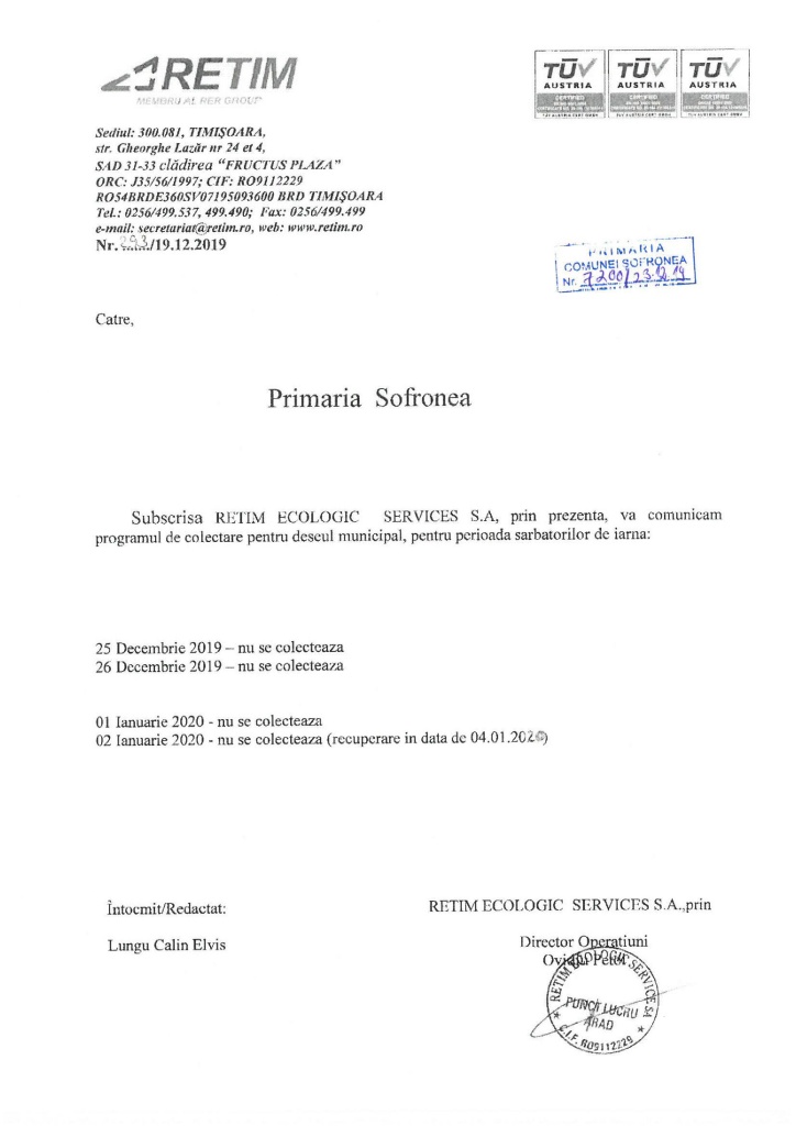 Anunț RETIM