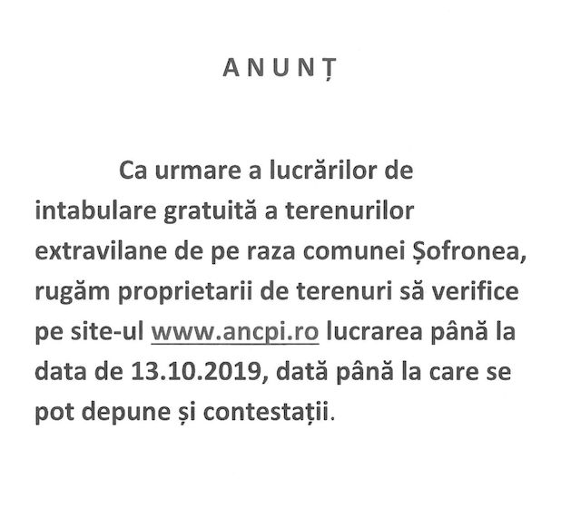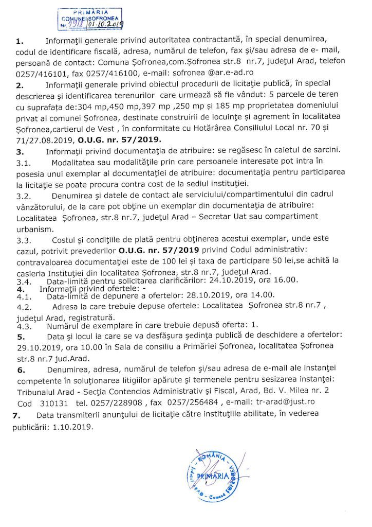 CAIETUL DE SARCINI POATE FI PROCURAT DE LA PRIMARIA COM.ŞOFRONEA PÂNĂ ÎN DATA DE 13.01.2020.